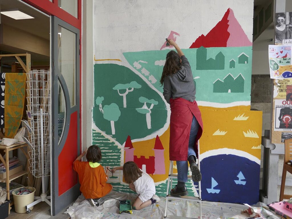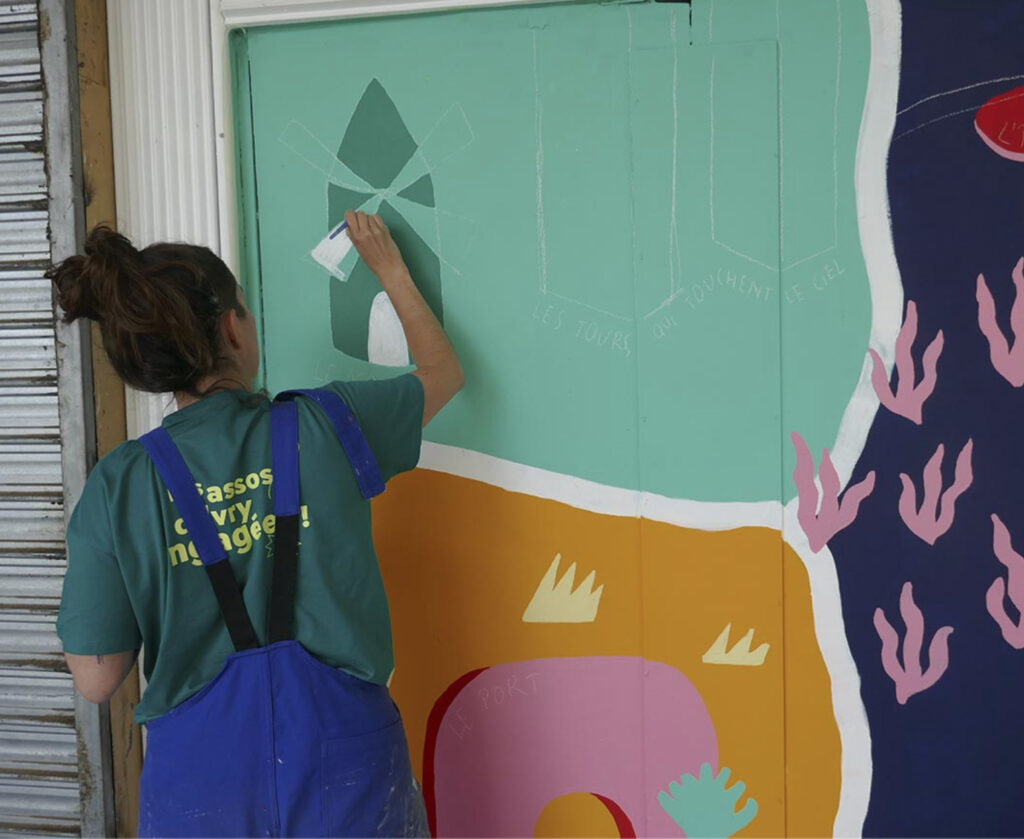 Réalisation de deux fresques : à La Tracterie et à la Maison de Quartier du Petit-Ivry en ateliers participatifs