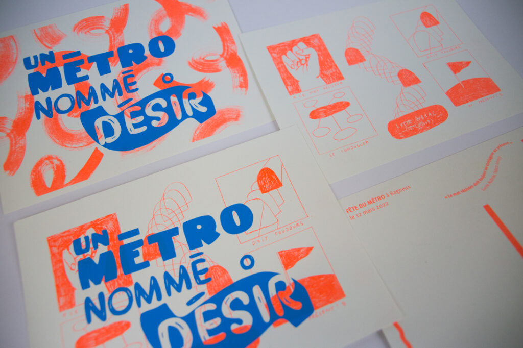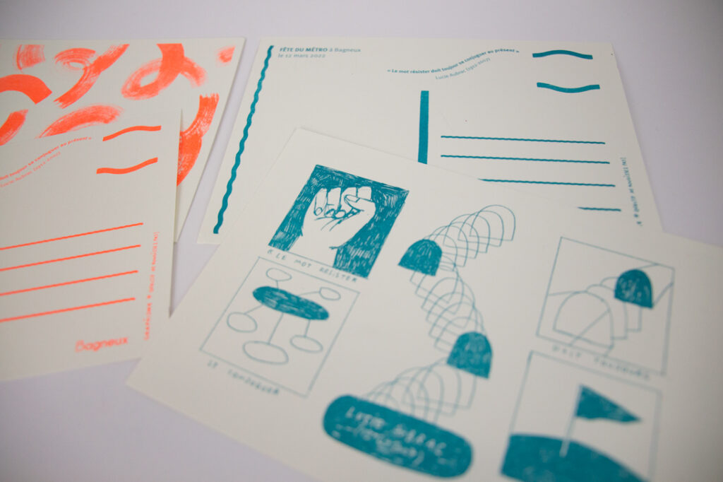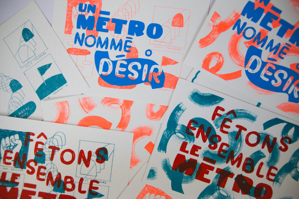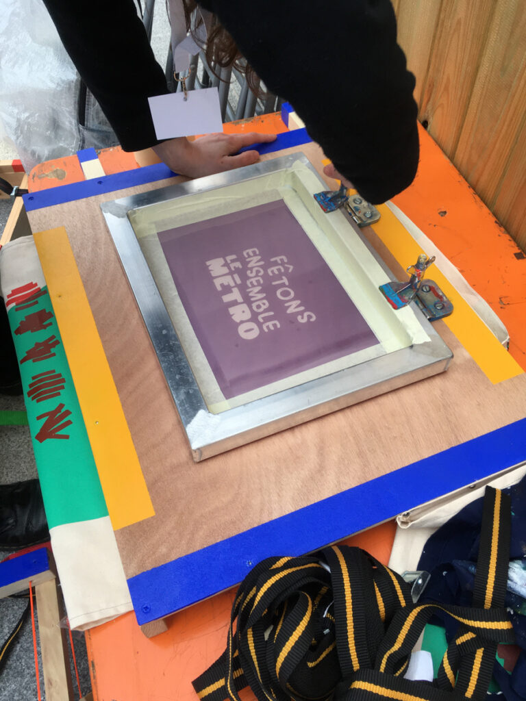 Impressions en sérigraphie avec le dispositifs des ouvreuses pour l’inauguration du nouveau métro « Lucie Aubrac » à Bagneux (92)